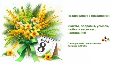От всей души поздравляем Вас с чудесным праздником – Международным женским днем! Пусть этот день будет наполнен улыбками, цветами и самыми теплыми словами.
