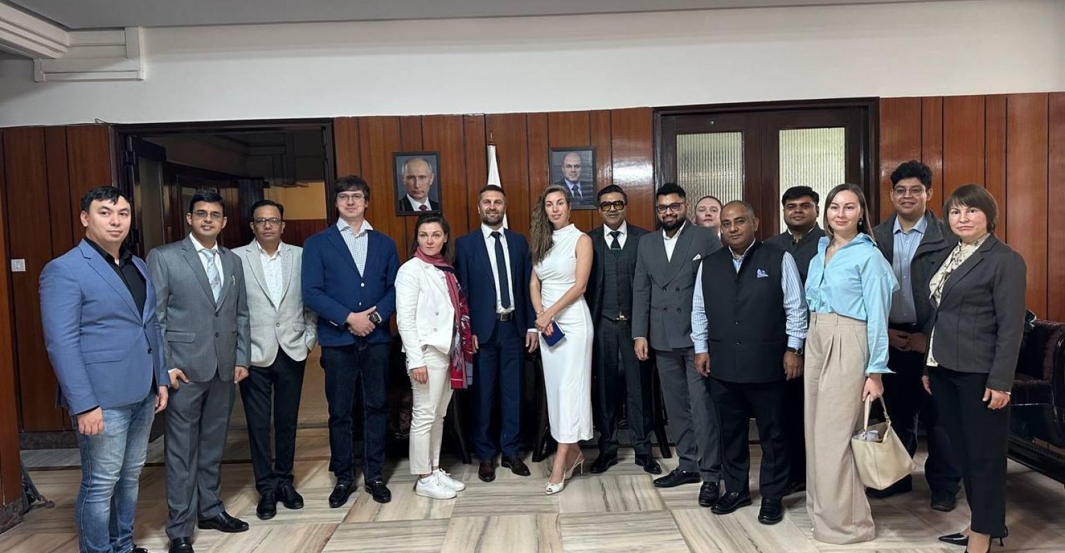 24 ноября 2025 г деловая программа открылась в Торговом представительстве РФ в Индии. Делегацию встретили Андрей Соболев, Торговый представитель РФ в Индии, и Оксана Агафонова, «цифровой атташе» ТП РФ в Индии, что дало яркий старт поездке!
