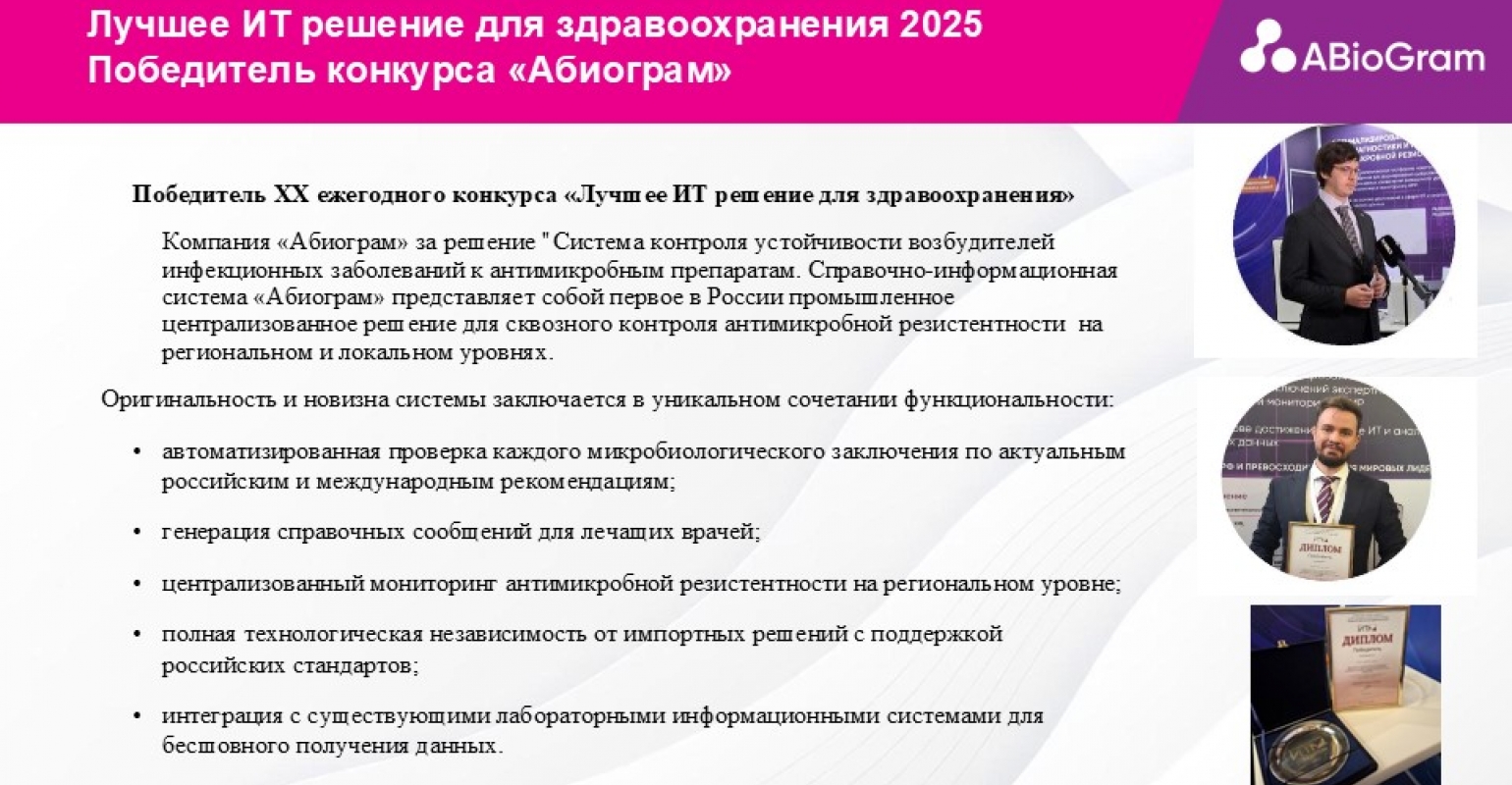 Компания Абиограм стала победителем конкурса "Лучшее ИТ решение для здравоохранения" 2025.